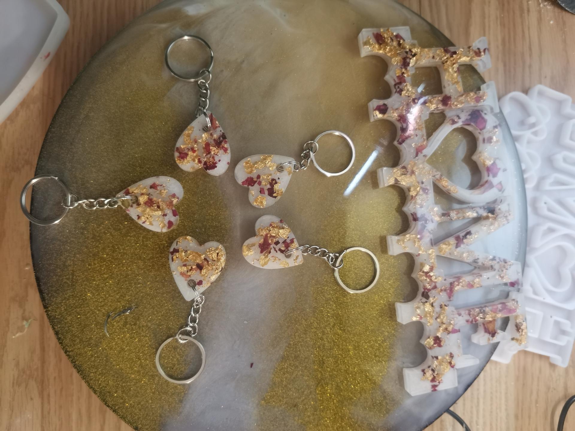 5 portes clés avec support feuille d'or et rose