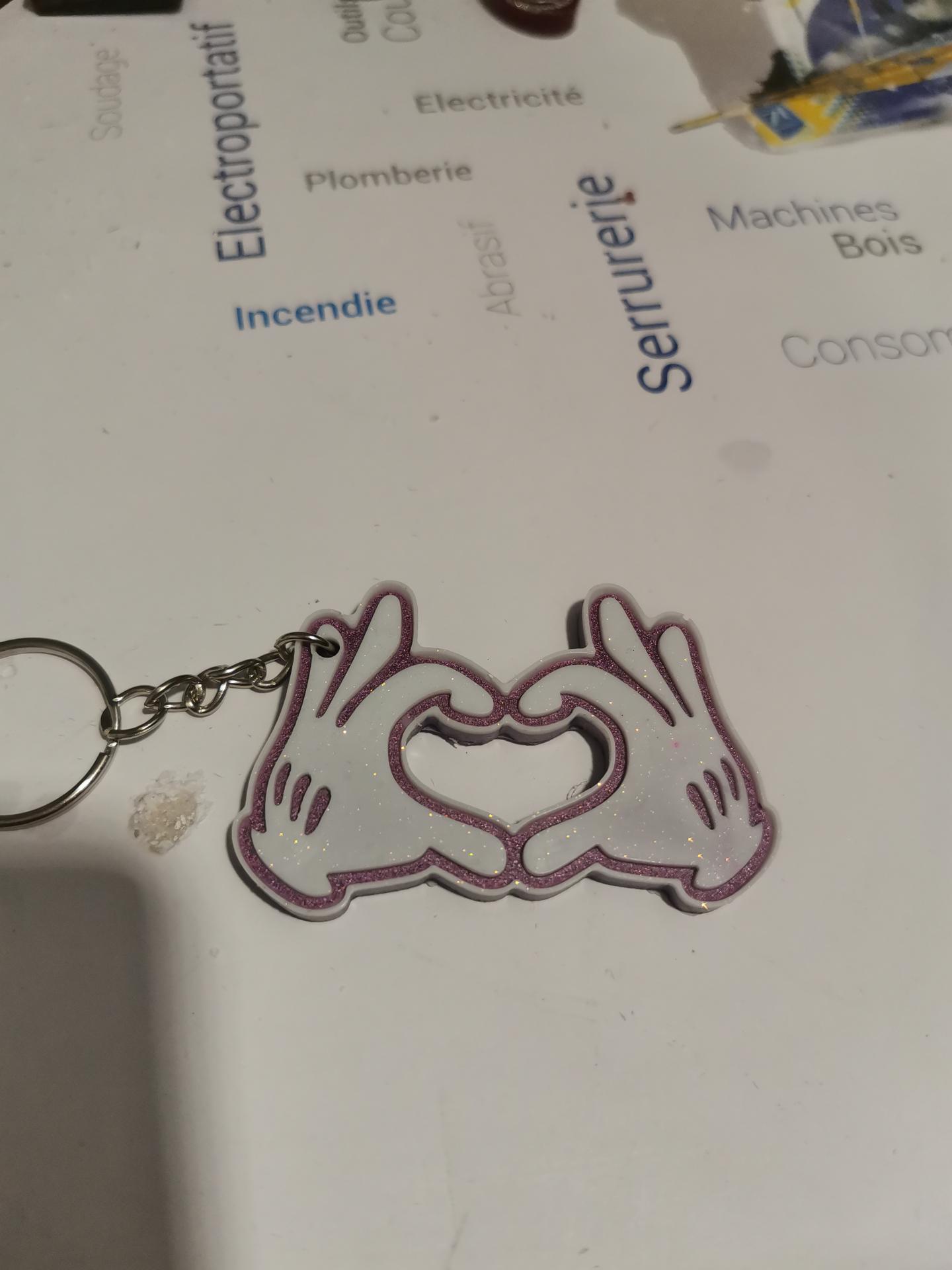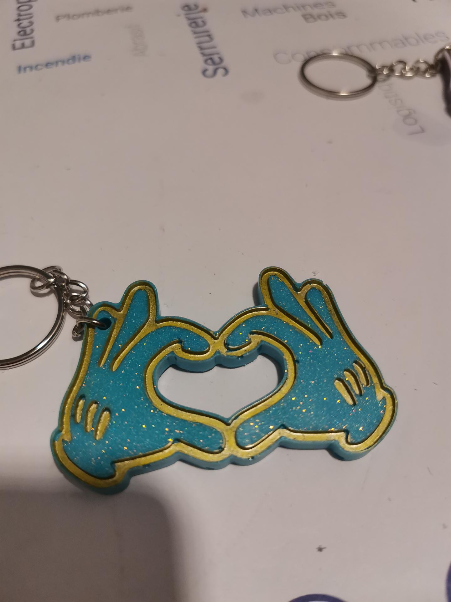 Porte clé main de mickey en cœur