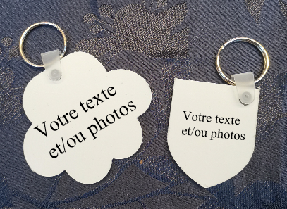 porte cles en forme de patte de chien, cœur, carrée ou ecusson personnalisable sur 2 faces