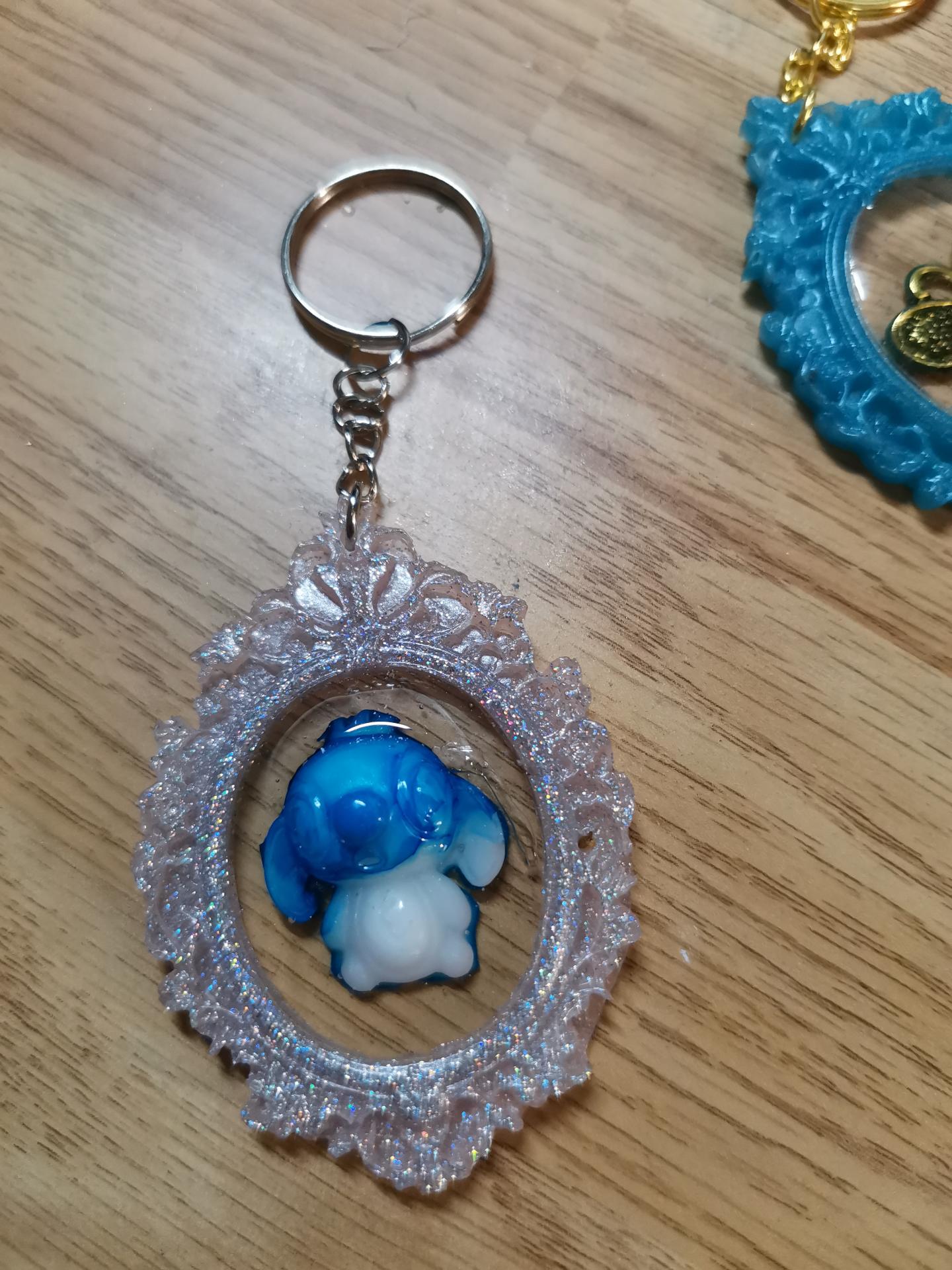 Porte clés cadre rose stitch