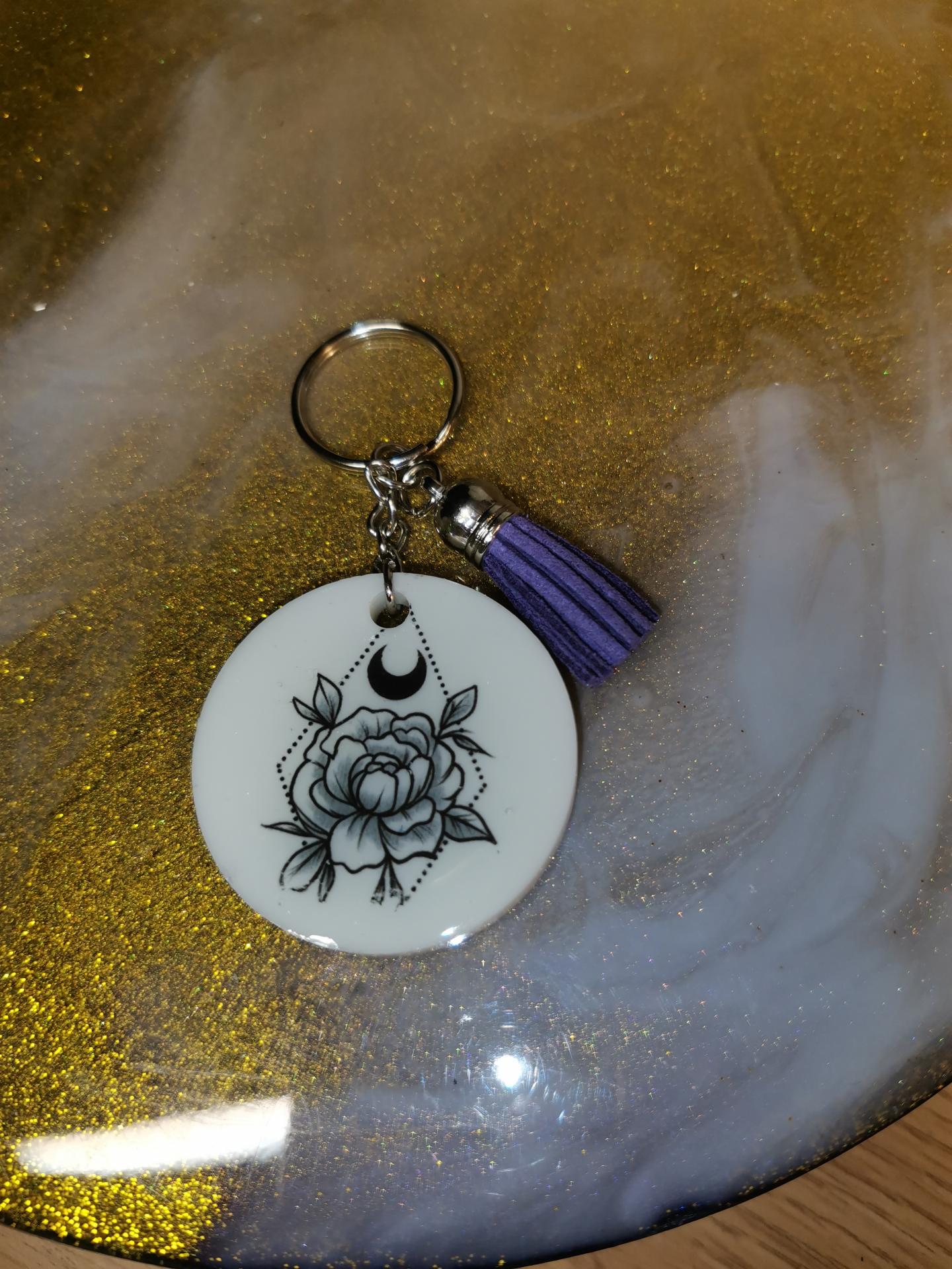 Porte clés rond papille violette